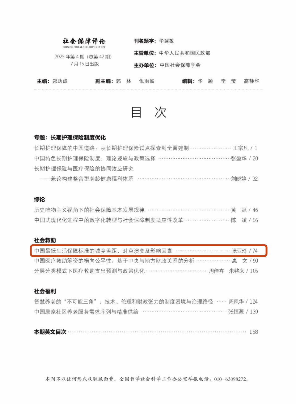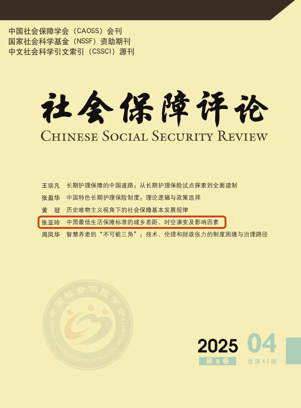 学生做爱影片 张亚玲老师最新研究成果“中国最低生活保障标准的城乡差距、时空演变及影响因素”在社会保障领域权威期刊《社会保障评论》(2025年第4期)上发表,并成功入选封面论文。