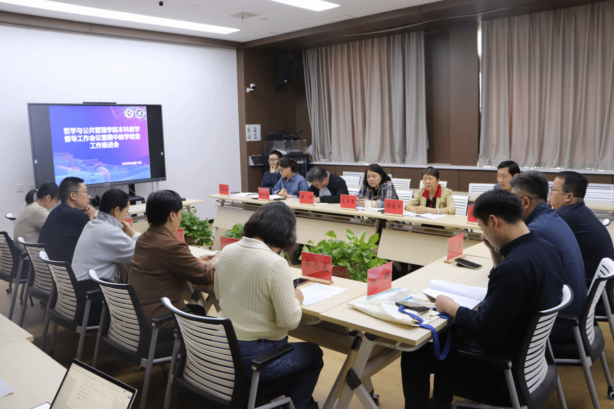 在第二会议室组织召开“本科教学督导工作会暨期中教学检查工作推进会”。校级督导员吴河清、韩爱平、教学副院长刘辉、督导组组长及成员、教务办相关人员共同参会,会议由张可新主持。