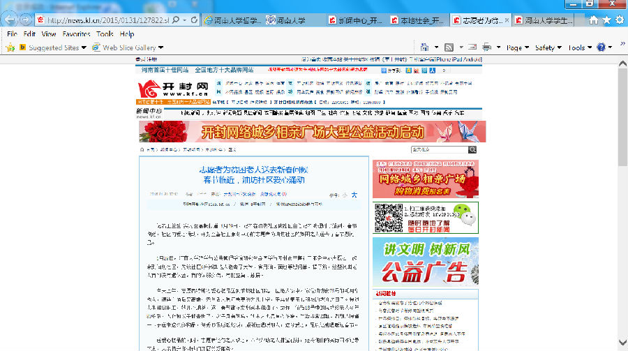 党委的号召而举办的系列公益活动,旨在培育和践行社会主义核心价值观,推进文明河南建设,深入挖掘传统节日的精神内涵。前期活动分为“爱施福粥,情暖汴城”志愿服务活动和“忆往昔岁月,品今日生活”社区慰问活动两大部分。而在春节后则将举行以“俺的美好春节,俺的美丽生活”为主题的新年乐喜事展示活动。