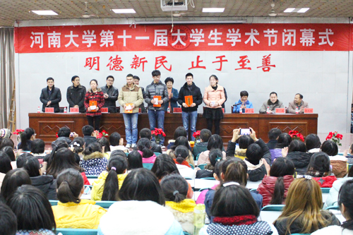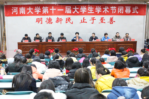 党委书记莫起升致辞,他对学术节的成功举办表示祝贺,对一直以来支持学术节工作的领导表示衷心的感谢。他借用蔡元培先生“大学者,研究高深学问者也”鼓舞大学生要有肯钻研、肯吃苦的科研劲头,在科研中要处理好“专”与“博”、“学习”与“社会实践”这两对关系,将学术基础真正做到“宽、厚、深”。院长张向东从组织、主题、规模、内容、效果五方面对本届学术节给予了充分的肯定。他希望同学们一方面要进一步巩固学术节的成果,在实践中锻炼能力、培养才干、服务社会。另一方面要将培育与践行社会主义核心价值观与专业理论结合起来,充分发挥专业优势,在开展实践活动的同时,进一步形成自己的理论成果。