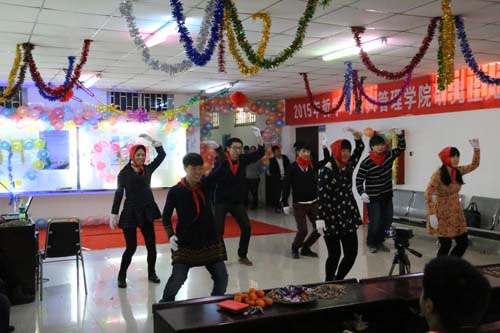 联欢会伊始,研究生会主席团就带来了轻快幽默的开场舞,顺利带动了现场气氛。随后,研究生会办公室、学术部、文体部及宣传部四个部门各显其能,你方唱罢我登场,好不热闹。既有小品《那些年,我们一起追的女孩》、相声《同桌的你》等风趣幽默的语言类节目,又有《女生的N次方》、《跳桥》等形式内容新颖的情景剧,而歌舞类节目中男声独唱《空白格》和舞蹈《月光下的凤尾竹》则美轮美奂,使人沉醉。在联欢会的最后,师生们一起在一曲《光阴的故事》中手拉手载歌载舞,现场气氛达到高潮。