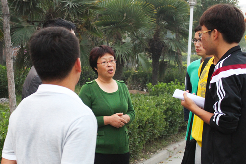 2014级本科生在金明校区南苑广场开展早操活动,院党委副书记胡春贞到现场对活动进行指导。