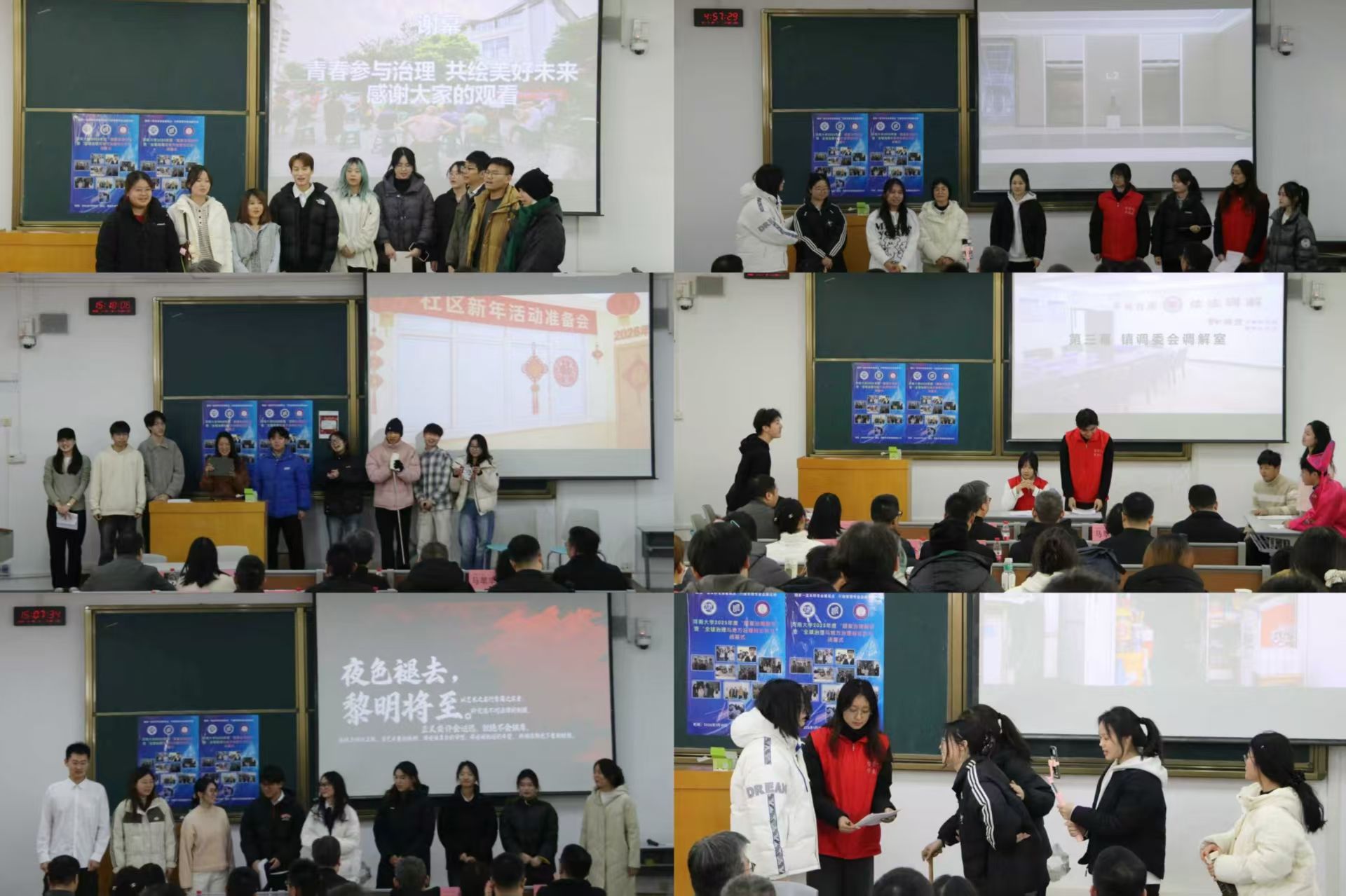2023级行政管理专业全体本科生精心准备了5个国家治理剧场节目。表演环节中,第一组的同学们带来的剧场节目《幸福电梯奇遇记》别出心裁,用一部电梯诉说协商的智慧与社区的温情,传递人情温度间蕴含的共识的高度;第二组的同学们带来《艺术之名》,揭露以艺术之名的权钱交易与贪腐行为,彰显法律制裁贪腐的正义性;第三组的同学们带来《积分暖冬,同心筑元》,以积分制进社区的创意想法展现不同观念之间的碰撞,感受党建引领下,日常治理中那些具体而温暖的中国式协商;第四组的同学们带来《社区小院“议事咖”》,蕴含了“治理不必宏大,民主可日常化;真协商起于微末,成于互信”的道理;第五组的同学们带来《彩礼风波》,探讨传统习俗与现代观念的碰撞,通过调解达成婚约解除与财物返还协议。