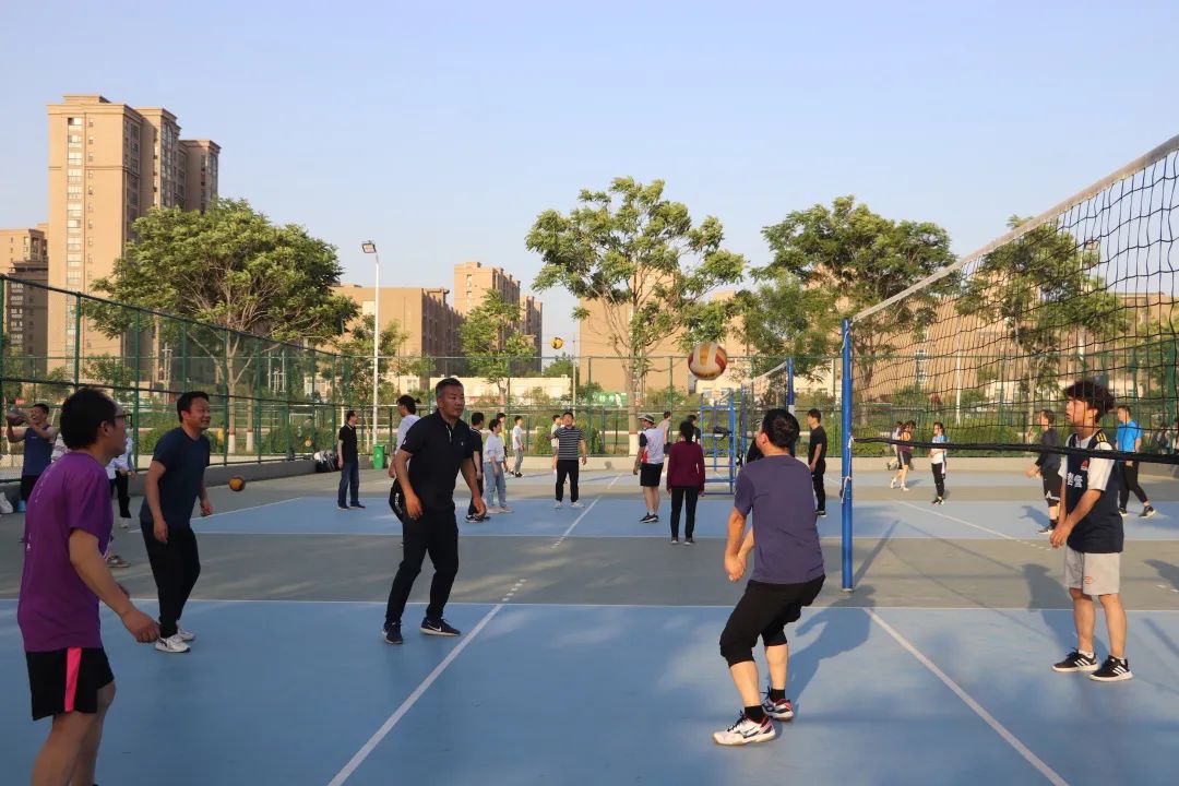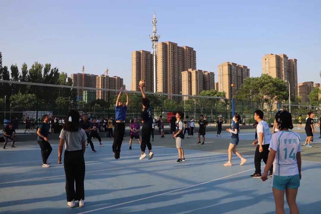 随着裁判员的一声哨响,比赛正式开始。师生怀着饱满的热情和绝佳的精神状态,一次次的发球、传球、扣球和拦网,双方有来有往,扣人心弦,无不显示着老师和同学们的实力与才智。赛场上,学生们激情澎湃,彰显青春活力;老师们配合默契,满怀必胜信心。第一局老师们以21:12的比分领先学生队伍,但学生们也不甘示弱,奋起直追,将比分拉回24:24,最终比赛以平局落下帷幕。球场上队员们挥洒汗水,尽显飒爽风姿,打得酣畅淋漓;场下的观众捬操踊跃,振臂呐喊,看得热血沸腾。