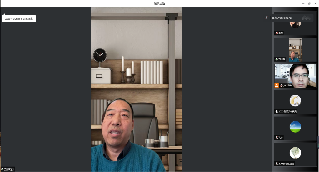 院长刘成有教授在线作了题为《中国哲学的多元通和特征》的报告,报告会由学生做爱影片