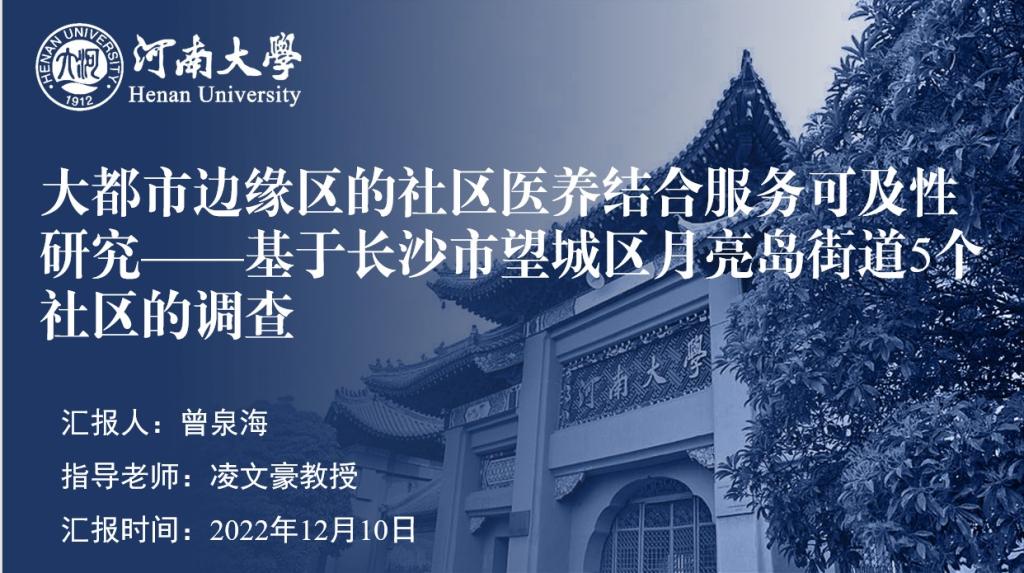 2020级社会保障专业研究生曾泉海的题为《大都市边缘区的社区医养结合服务可及性研究—基于长沙市望城区月亮岛街道5个社区的调研》作品,在劳动与社会保障系凌文豪教授指导下,通过层层选拔,在此次征集活动中被评选为社会保障优秀调查报告!