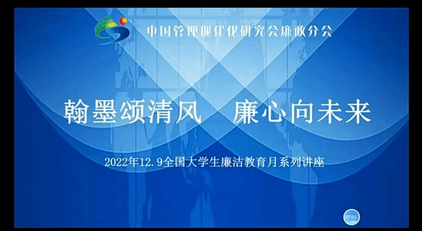 明德廉风学社积极响应中国管理现代化研究会廉政建设与治理研究专业委员会的号召,于12月3日至4日参加活动主题为“翰墨颂清风,廉心向未来”的廉洁教育系列讲座。通过参与三场不同专题的讲座,帮助大学生学习廉洁知识,提高廉洁素养,培养廉洁意识。