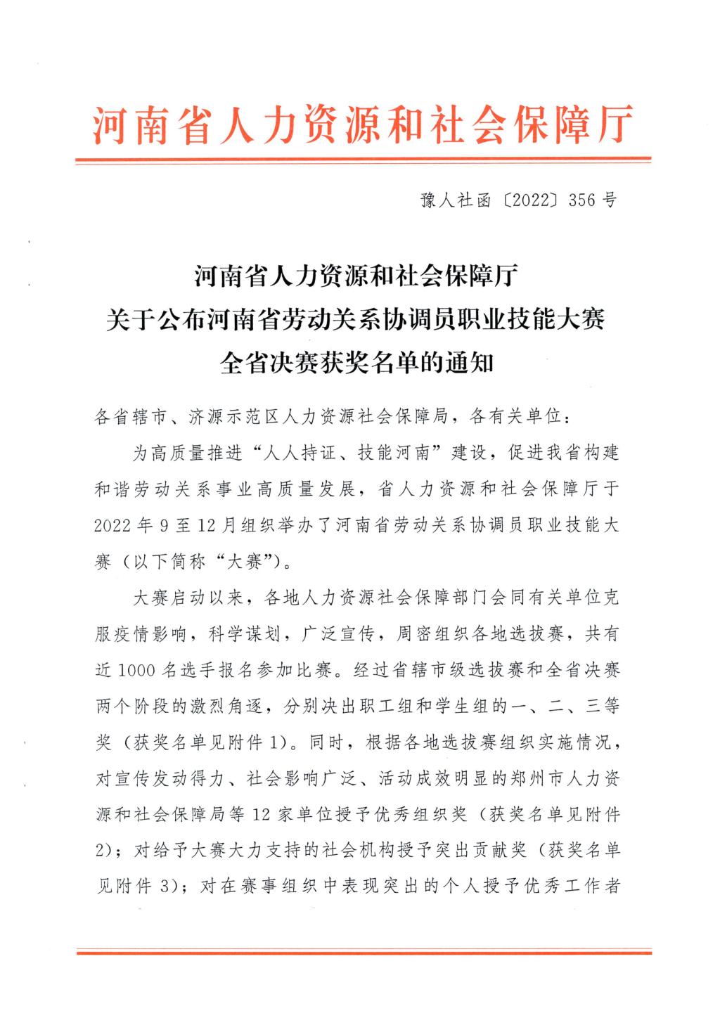 日前,河南省人力资源和社会保障厅公布了“河南省劳动关系协调员职业技能大赛”全省决赛获奖名单(豫人社函【2022】356号)。学生做爱影片