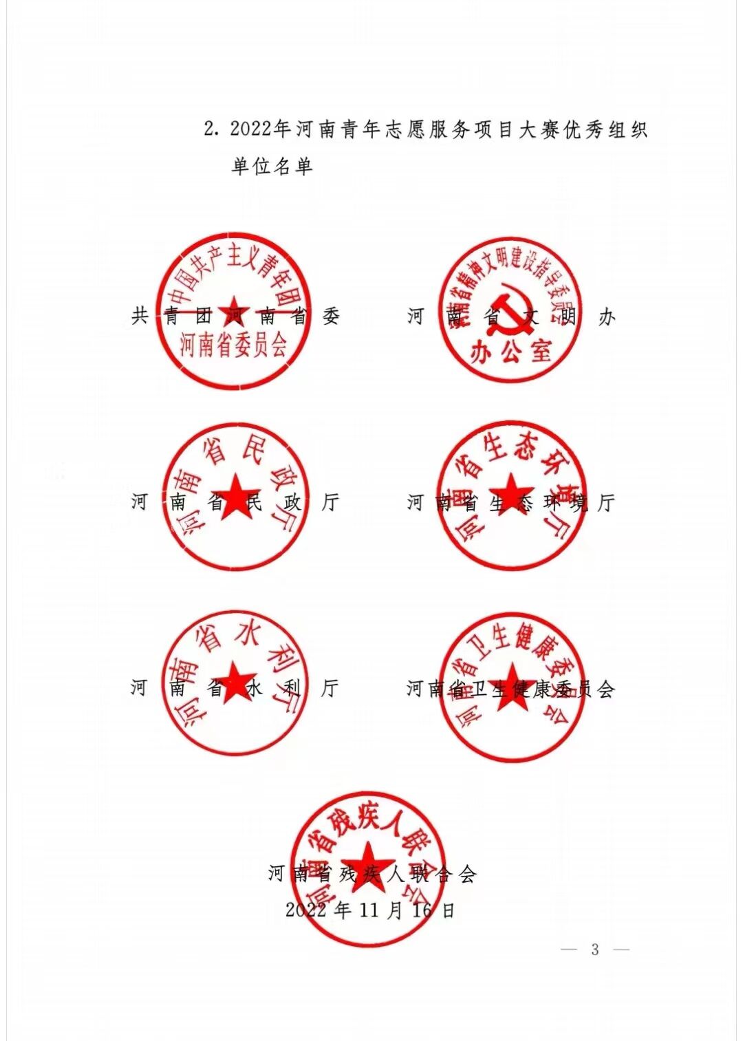 据悉,本届赛事以“喜迎二十大、志愿新时代”为主题,由共青团河南省委、河南省文明办、河南省民政厅、河南省生态环境厅、河南省水利厅、河南省卫生健康委员会、河南省残疾人联合会共同举办。大赛设乡村振兴、环境保护、文明实践、关爱少年儿童等13个类别,共计249个项目参赛。