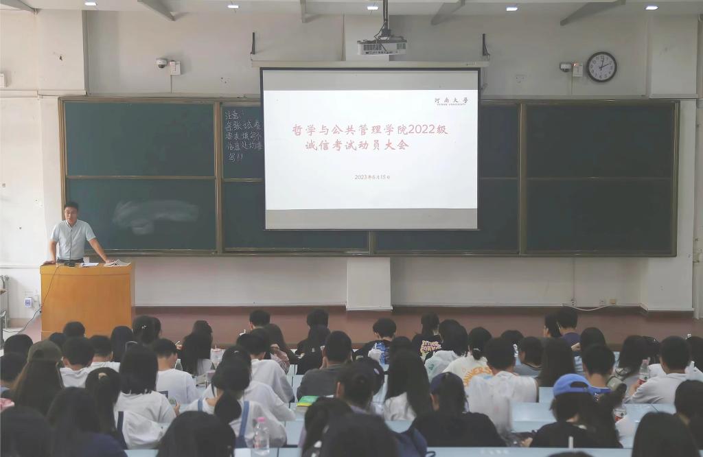 2022级本科生在综合楼1201教室召开诚信考试动员大会,本科2022级辅导员王天宇和2022级全体学生参加会议。