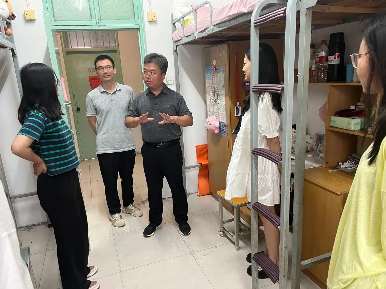 党政领导班子成员、各专业系主任及各专业教工支部书记等一行深入2023级本科新生宿舍进行慰问看望,与学生们面对面交流。
