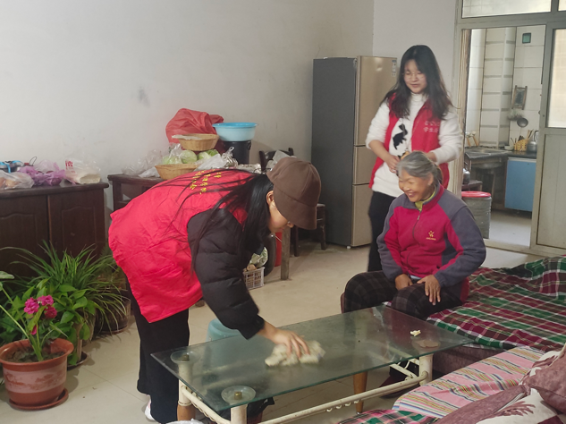 志愿者们分成两个小组,一组负责使用劳动工具,清理路面和草丛中的垃圾,改善卫生情况,美化社区环境;另一小组则走进老人家中,帮助他们打扫屋内卫生,进行交流,关心他们的生活。
