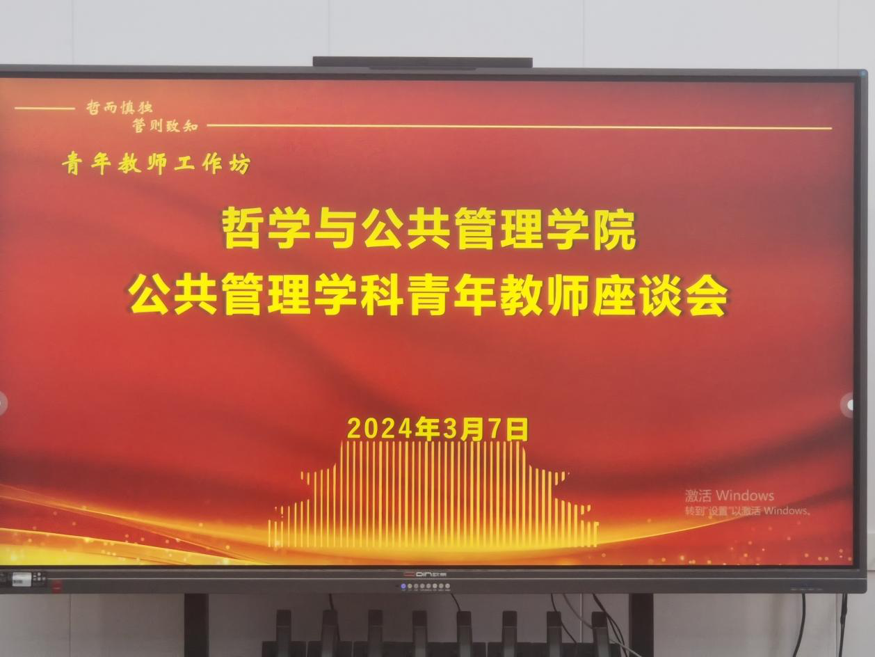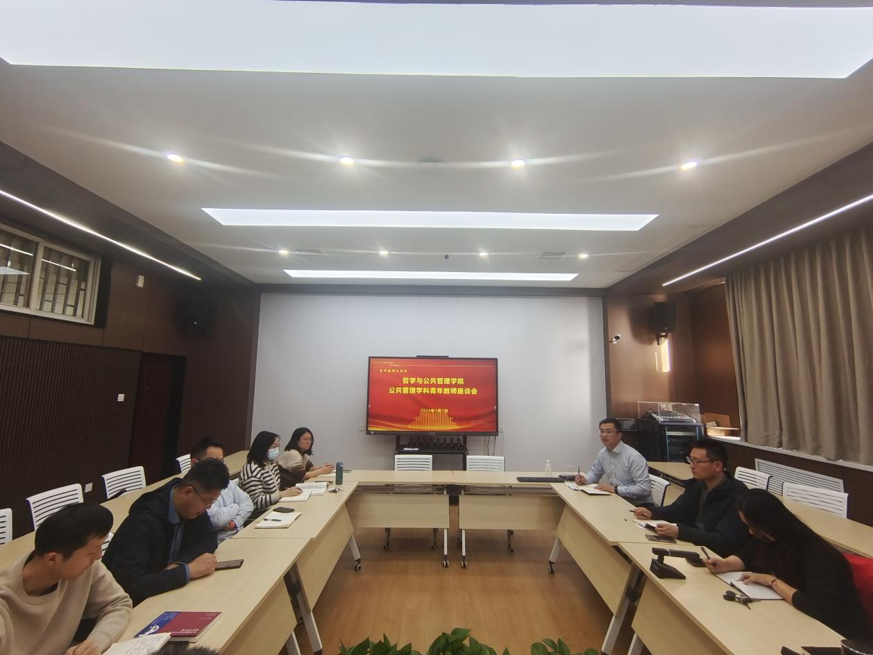 在第二会议室举行公共管理学科青年教师座谈会,副院长赵炎峰、田丰韶、刘辉出席会议,公共管理学科数十位青年教师参加会议,会议分两个阶段进行。
