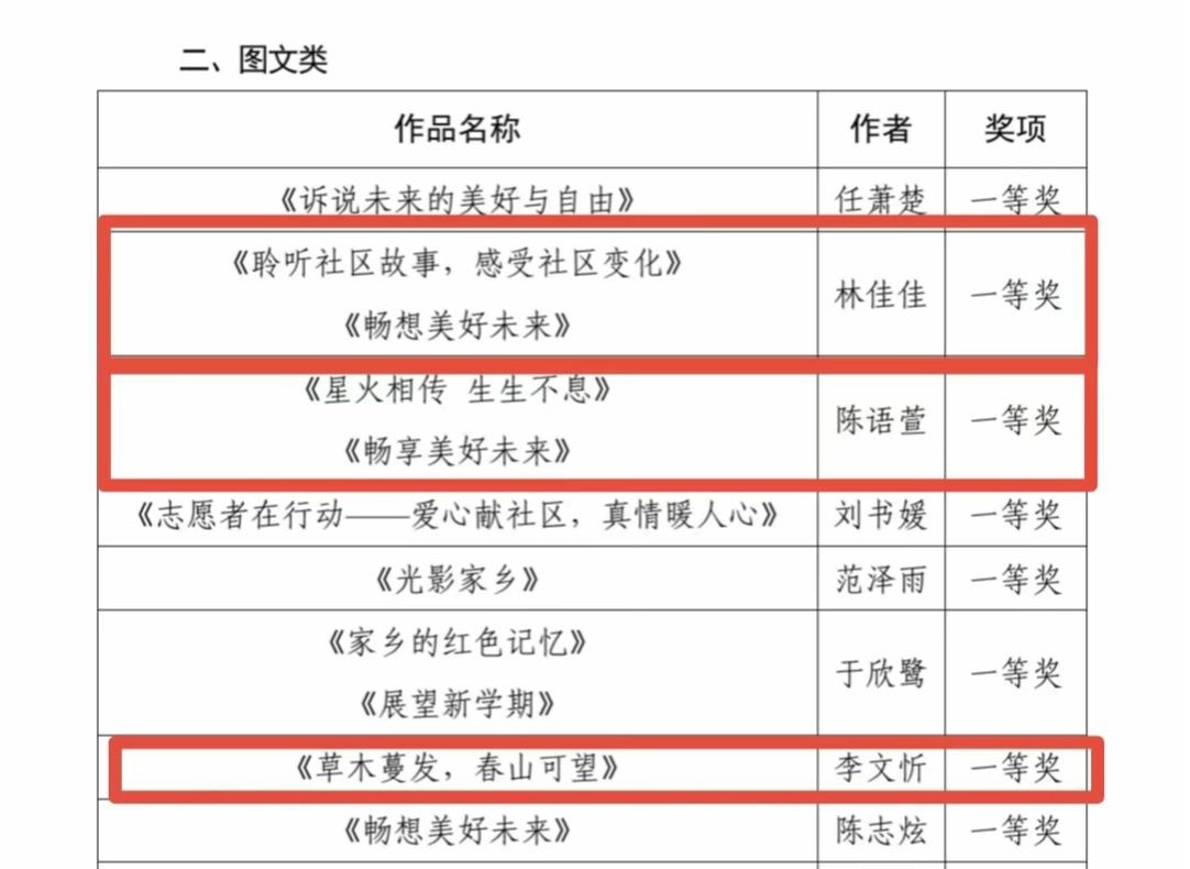 被评为“优秀组织单位”,2023级公共管理类专业本科生谭惠灵、薛迎晨的作品获得短视频类一等奖,2021级行政管理专业本科生林佳佳、2022级行政管理专业本科生李文忻、2023级公共管理类专业本科生陈语萱获得图文类一等奖。