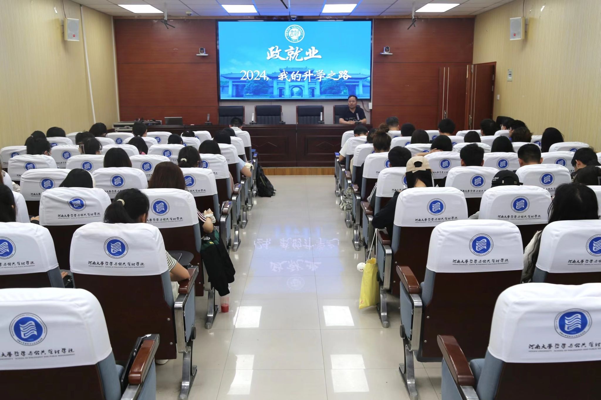 第一会议室举办“‘政就业’:2024,我的升学之路”经验交流会,行政管理系刘辉教授、2021级本科生辅导员张亚玲以及2021级行政管理专业全体学生参加,2024届三位本科毕业生受邀分享。会议由行政管理系主任吴岚波主持。